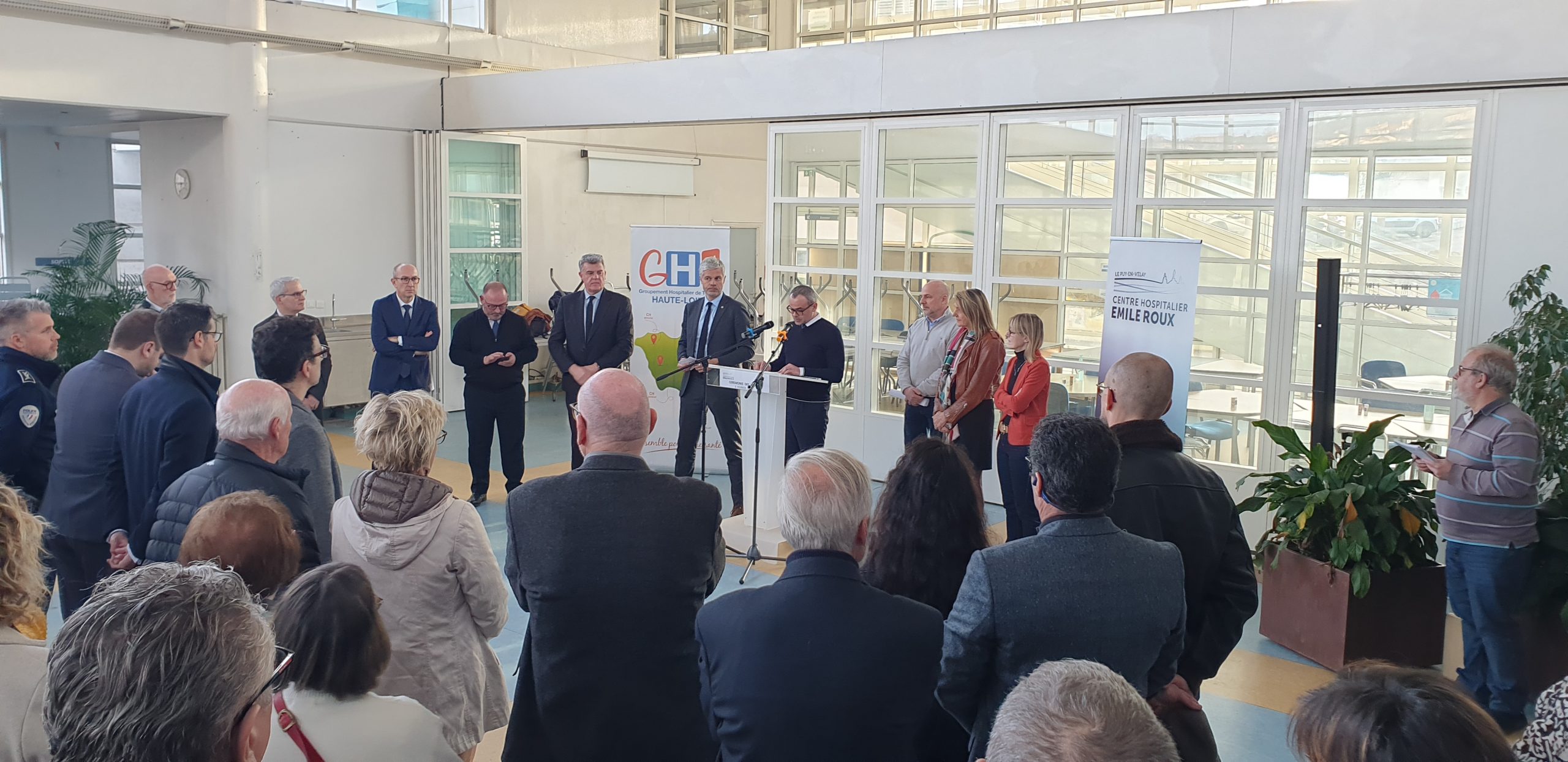 Accompagnés par une partie des élus représentant la Haute-Loire, les projets majeurs ont été mis en avant comme l’inauguration de l’internat des Buissonnets et de l’IFSI – IFAS, la mise en service de l’IRM d’Yssingeaux, la création d’un poste d’infirmière de garde de nuit pouvant répondre au téléphone pour traiter les urgences des EHPAD altiligériens à distance, l’inauguration du SMR et les travaux en cours.