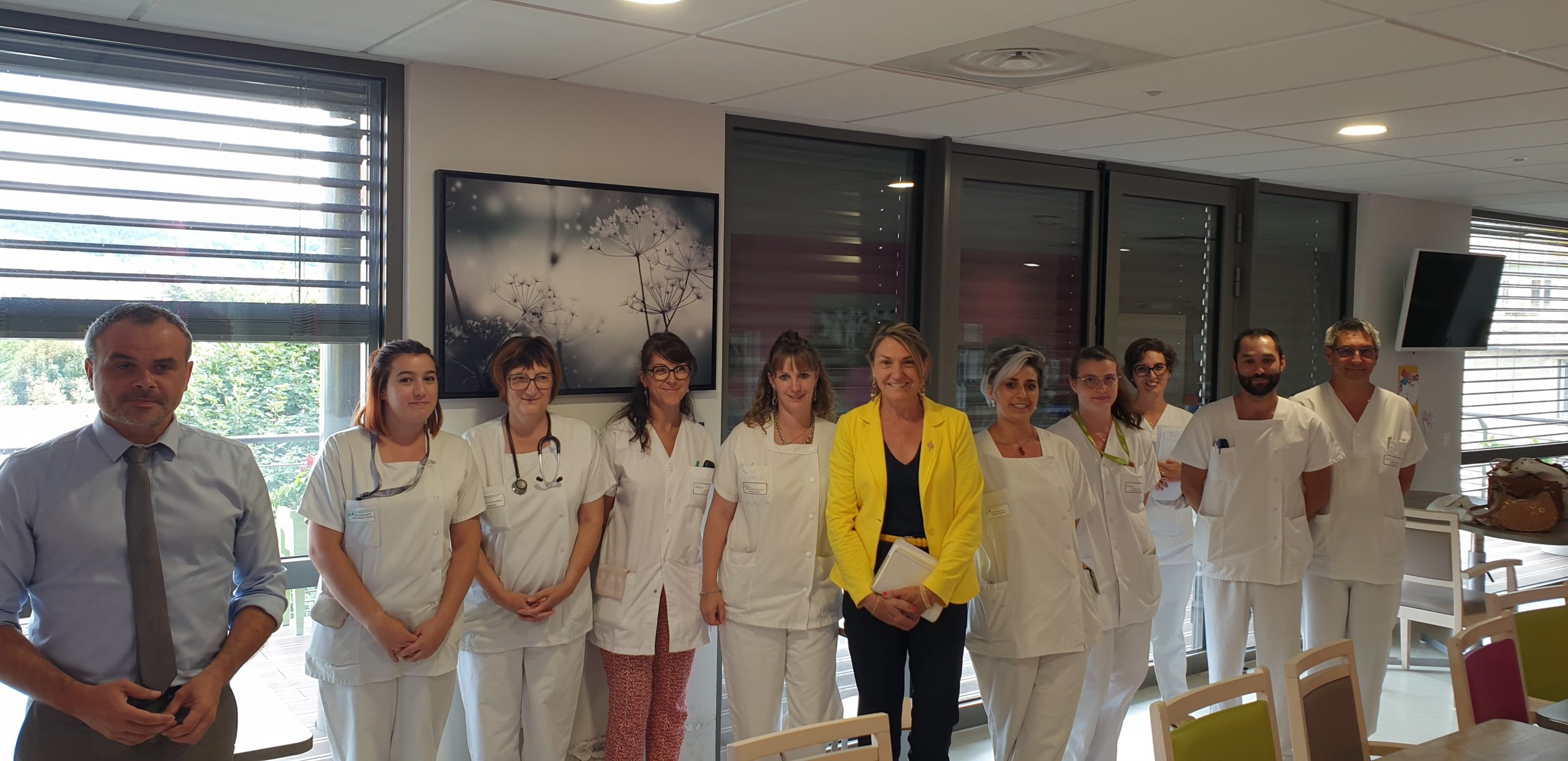 Au cours de sa venue, Isabelle VALENTIN et ses collaborateurs, accompagnés du Directeur par intérim, Cédric PONTON, de la Cheffe de pôle, Dr Florence Vergnolle, et du cadre supérieur de pôle, Monsieur David Soulier, ont pu recueillir les préoccupations du personnel soignant au sujet de l’évolution du « Bien vieillir » dans notre région, des rythmes de travail, des infrastructures, de la formation des professionnels et de l’attractivité des métiers du grand âge.